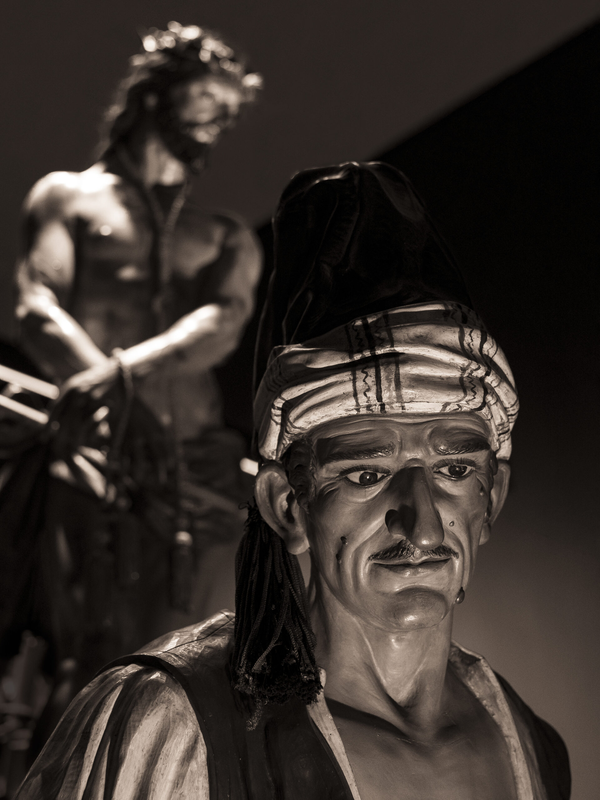 Precisamente, las imágenes talladas por Bussy van a desempeñar un papel determinante en el largo pleito entre cofrades y frailes que ocupa buena parte de la primera mitad del siglo XVIII. Cuando los mayordomos de la Sangre se llevan los cuatro pasos a Santa Eulalia y al convento de San Antonio, a raíz de que una riada acabara con el puente que comunicaba el partido de San Benito con la ciudad en 1701, los carmelitas reclaman sus derechos, y el mismo escultor declara que las sagradas efigies son propiedad de la cofradía.
