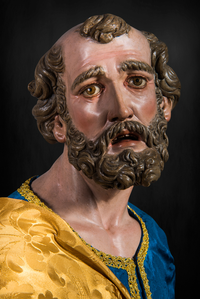 Dedicado durante sus primeros años al belenismo, en 1982 realiza su primer paso para la Semana Santa, y a partir de ese momento comienza a centrarse en una abundante producción que pronto le convertirá en el imaginero de referencia de las décadas finares del siglo XX y primeros años del XXI. Muy pronto recibe sus encargos para la Sangre. Primero, en 1985, el conjunto de Jesús en Casa de Lázaro, en el que el escultor ofrece una interpretación de la escena de Betania distinta a la del paso destruido de Sánchez Araciel, y un año más tarde el Cristo de las Penas, que sustituye al realizado por García Mengual y en el que el artista realiza una fehaciente demostración de su dominio del oficio, su capacidad para componer grupos y sus conocimientos anatómicos.