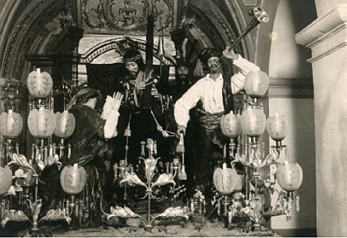 Los cofrades se enfrentaron entonces a la enorme tarea de reparar lo dañado, completar los pasos destruidos parcialmente y reconstruir los desaparecidos por completo, usando mientras tanto de soluciones provisionales, como la utilización de imágenes cedidas para la ocasión. No fue hasta 1945 cuando se pudo volver a disfrutar del grupo del Pretorio, para el que José Sánchez Lozano realizó las piezas de Pilatos y el popular Berrugo, como copia de las perdidas en 1936.