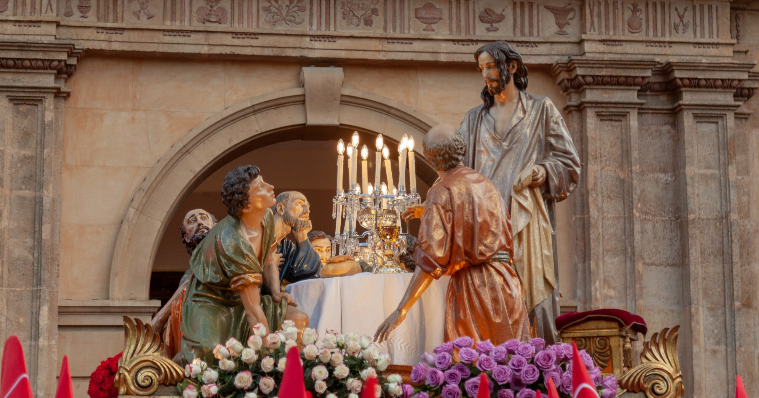 La Real, Muy Ilustre, Venerable y Antiquísima Archicofradía de la Preciosísima Sangre de Nuestro Señor Jesucristo de Murcia fue fundada el día 11 de abril de 1411 por los seguidores de San Vicente Ferrer, movidos por sus predicaciones en la ciudad. Su primera sede estuvo en la Iglesia de Santa Olalla de los Catalanes, donde la Cofradía pudo tener por titular un Cristo del Amparo o de la Esperanza muy venerado en aquel templo y cuya fama de milagroso, y el elevado número de enfermos que lo visitaba, dio lugar a la construcción, por el año 1500, de un hospital junto a la Iglesia. Por razones desconocidas, la Cofradía se trasladó en 1555 a la vecina iglesia del Convento de la Santísima Trinidad, donde se estableció por unos años, reapareciendo en 1589 en el Convento que los Carmelitas Calzados habían constituido en el partido de San Benito. En 1603, se redactaron y aprobaron las primitivas Constituciones, que no se han conservado, pero sí las de 1625, en las que se establecía que la procesión saldría la tarde del Viernes Santo tras el acto del desenclavamiento. Más tarde pasó al Jueves Santo y, finalmente, a finales de siglo, cambió a primera hora de la tarde del Miércoles Santo, y se incorporó la Hermandad de Labradores del partido de San Benito, con la Virgen de la Soledad. Por entonces, las diferencias con los frailes carmelitas, debido principalmente a su deseo de cambiar la denominación de la cofradía, provocaron el encargo de un nuevo titular, El paso contemplativo de la Preciosísima Sangre de Cristo, al prestigioso escultor Nicolás de Bussy, que entregó en el año 1693. El artista estrasburgués ya había realizado con éxito el grupo de La Negación, en 1689, y más tarde talló también el grupo del Pretorio, o Ecce-Homo, y una nueva Virgen de la Soledad.