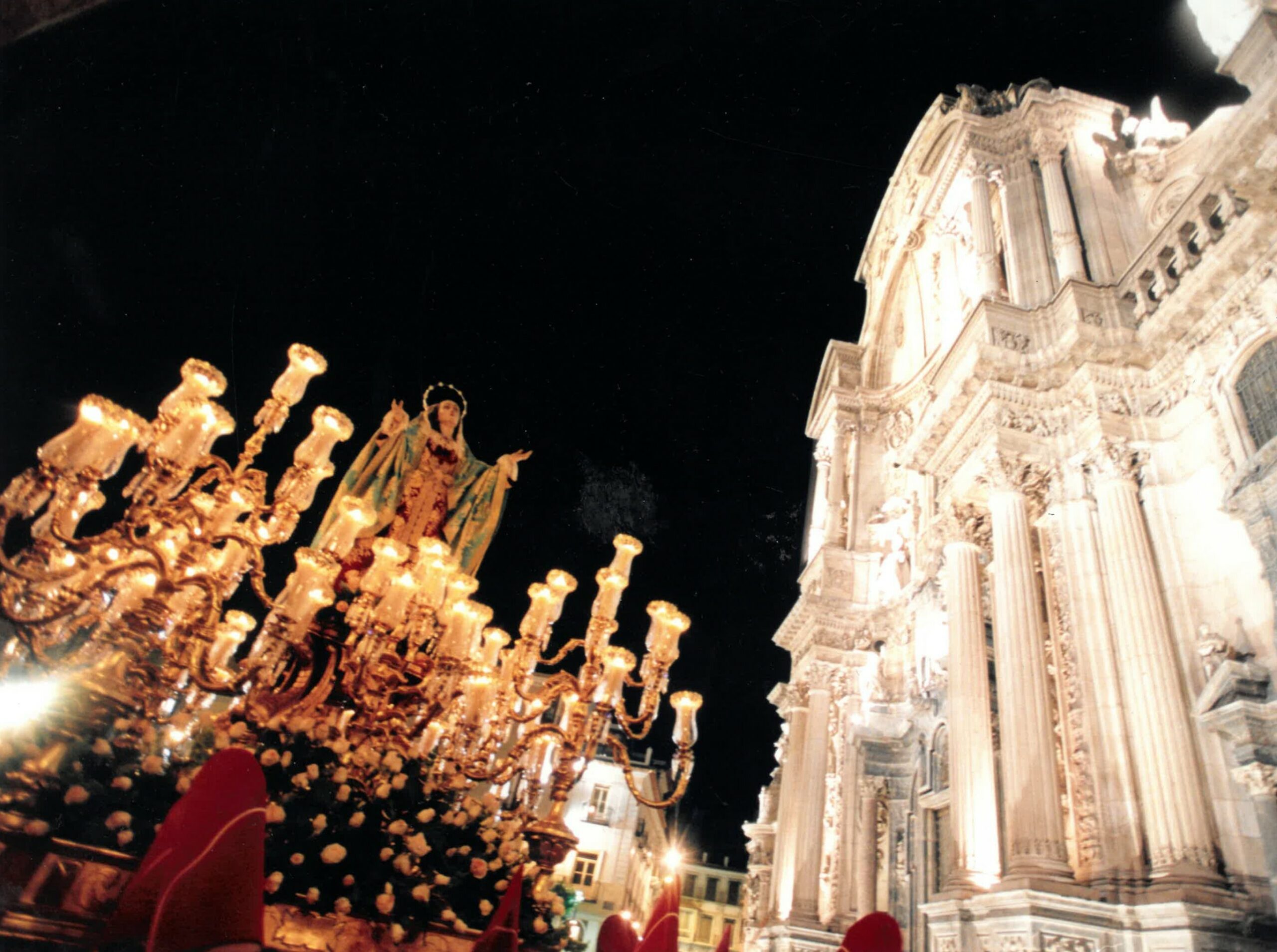 Fue tallada en 1787 por Roque López, el más reconocido de los discípulos de Francisco Salzillo, y su entrega y traslado tuvieron lugar el 2 de abril del mismo año desde el convento de Santa Clara La Real hasta el del Carmen. Sigue la tipología de la Virgen de los Dolores creada por su maestro, que tanta fama y éxito le proporcionó. Es imagen de vestir, que luce habitualmente vestido rojo y manto azul. Ofrece los brazos abiertos, con las palmas de las manos hacia arriba y la mirada en el cielo, lo que, unido a la boca entreabierta y unos grandes ojos, de los que resbalan lágrimas de cristal, permite transmitir al espectador un dolor desgarrado por la muerte del Redentor. El trono realizado por José Jiménez Arróniz y dorado por Riera en 1892 es el único de la procesión que se salvó de la Guerra Civil. Cuenta con ocho candelabros para un total de ochenta y ocho tulipas conteniendo velas, mientras que la Virgen se alza sobre un pedestal soportado por cuatro grifos, seres mitológicos con cabeza de águila y garras de león.