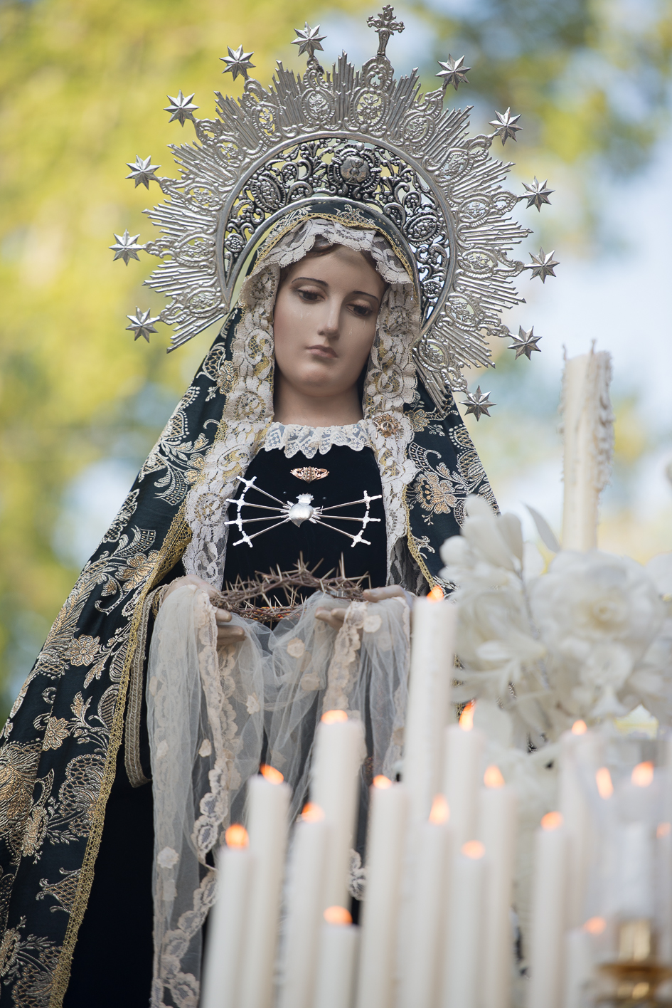 Obra de Antonio Campillo en 1985. Preside la procesión de Jueves Santo. De suaves y bellas facciones, con una tez clara y anacarada, la imagen de María en su soledad se muestra serena y recogida en el dolor tras la terrible pérdida de su Hijo. En silencio, baja su mirada y porta en sus manos un pañuelo para secar sus lágrimas. Lleva vestido blanco y manto negro brocado en oro, coronada por una diadema de estrellas en plata. Procesiona sobre el trono de José María Gómez Sandoval de 1942, que antaño procesionaba con el Cristo de la Sangre.